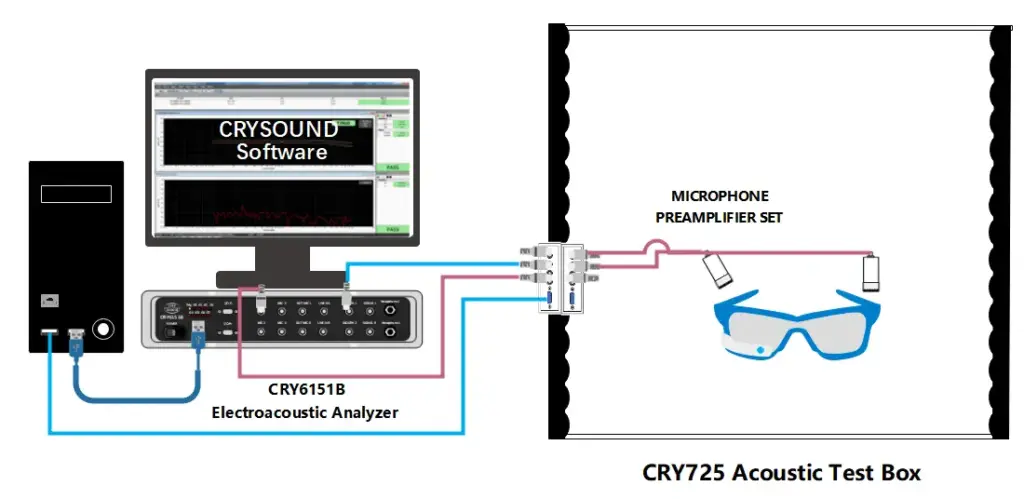 CRYSOUND supports customized EQ algorithms. In one mass production project, speaker EQ calibration was introduced at the final test station under free-field conditions, and the results were accepted by the customer, validating the applicability and practical significance of this solution for glasses products.