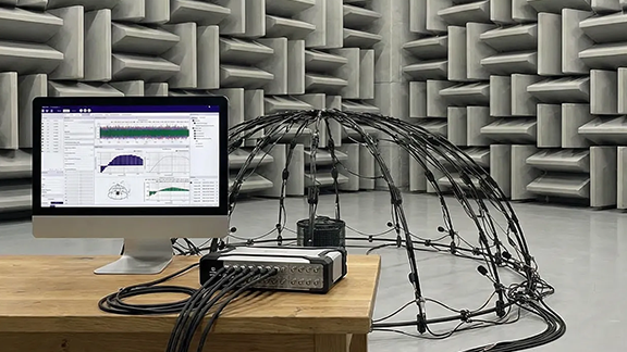 Under regulations such as the EU Machinery Noise Directive, more and more products—from toys and power tools to IT equipment—are required to declare their sound power level on labels and in documentation, rather than simply claiming they are “quiet enough.” For typical office devices like notebook computers, idle noise is often around 30 dB(A), while full-load operation can approach 40 dB(A). These figures are usually obtained from sound power measurements performed in accordance with ISO 3744 and related standards. Sound Pressure vs. Sound Power A noise source emits sound power, while what we measure with a microphone is sound pressure. Sound pressure varies with room size, reverberation, and microphone distance, whereas sound power is the source’s own “noise energy” and does not change with installation or environment. That makes sound power a better metric for external product noise specification. In simple terms: Sound power is the cause – the energy emitted by the source (unit: W / dB); Sound pressure is the effect – the sound pressure level we hear and measure (unit: Pa / dB). ISO 3744 defines how to do this in an “essentially free field over a reflecting plane”: arrange microphones around the source on an enveloping measurement surface, measure the sound pressure levels on that surface, then apply specified corrections and calculations to obtain stable, comparable sound power levels. Device Under Test: An Everyday Notebook Computer Assume our DUT is a 17-inch office notebook. The goal is to determine its A-weighted sound power level under different operating conditions (idle, office load, full load), in order to: Compare different cooling designs and fan control strategies; Provide standardized data for product documentation or compliance; Supply baseline data for sound quality engineering (for example, whether the fan noise is annoying). The test environment is a semi-anechoic room with a reflecting floor. The notebook is placed on the reflective plane, and multiple microphone positions are arranged around it (using a hemispherical frame or a regular grid). Overall, the setup satisfies ISO 3744 requirements for the measurement surface and environment. Measurement System: SonoDAQ Pro + OpenTest Sound Power Module On the hardware side, we use SonoDAQ Pro together with measurement microphones, arranged around the notebook according to the standard. OpenTest connects to SonoDAQ via the openDAQ protocol. In the channel setup interface, you select the channels to be used and configure parameters such as sensitivity and sampling rate. From Standard to Platform: Why Use OpenTest for Sound Power? OpenTest is CRYSOUND’s next-generation platform for acoustic and vibration testing. It supports three modes—Measure, Analysis, and Sequence—covering both R&D laboratories and repetitive production testing. For sound power applications, OpenTest implements a sound-pressure-based solution fully compliant with ISO 3744 (engineering method), and also covering ISO 3745 (precision method) and ISO 3746 (survey method). You can flexibly select the test grade according to the test environment and accuracy requirements. The platform includes dedicated sound power report templates that generate standards-compliant reports directly, avoiding repeated manual work in Excel. On the hardware side, OpenTest connects to multi-brand DAQ devices via openDAQ, ASIO, WASAPI, and NI-DAQmx, enabling unified management of CRYSOUND SonoDAQ, RME, NI and other systems. From a few channels for verification to large microphone arrays, everything can be handled within a single software platform. Three Steps: Running a Standardized ISO 3744 Sound Power Workflow Step 1: Parameter Setup and Environment Preparation After creating a new project in OpenTest: In the channel setup view, select the microphone channels to be used and configure sensitivity, sampling rate, frequency weighting, and other parameters. Switch to Measure > Sound Power and set the measurement parameters: Test method and measurement-surface-related parameters; Microphone position layout; Measurement time; Other parameters corresponding to ISO 3744. This step effectively turns the standard’s clauses into a reusable OpenTest scenario template. Step 2: Measure Background Noise First, Then Operating Noise According to ISO 3744, you must measure sound pressure levels on the same measurement surface with the device switched off and device running, in order to perform background noise corrections. In OpenTest, this is implemented as two clear operations: Acquire background noiseClick the background-noise acquisition icon in the toolbar. OpenTest records ambient noise for the preset duration.In the survey method, OpenTest updates LAeq for each channel once per second;In the engineering and precision methods, it updates the LAeq of each 1/3-octave band once per second. Acquire operating noiseAfter background acquisition, click the Test icon. OpenTest will:a. Record notebook operating noise for the preset duration;b. Update real-time sound pressure levels once per second;c. Automatically store the run as a data set for later replay and comparison. Step 3: From Multiple Measurements to One Standardized Report After completing multiple operating conditions (for example: idle, typical office work, full-load stress): In the data set view, select the records you want to compare and overlay them to observe sound power differences under different conditions; In the Data Selector, click the save icon to export the corresponding waveform files and CSV data tables for further processing or archiving; Click Report in the toolbar, fill in project and device information, select the data sets to include, adjust charts and tables, and export an Excel report with one click. The report includes measurement conditions, measurement surface, band or A-weighted sound power levels, background corrections, and other key information. It can be used directly for inter