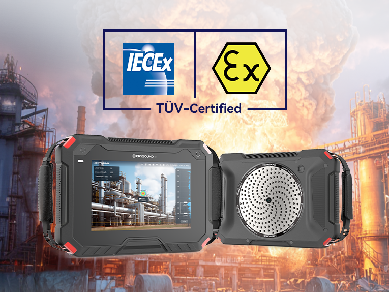 CRYSOUND proudly introduces the CRY8125 Ex Acoustic Imaging Camera — a cutting-edge solution specifically engineered for explosive atmospheres. With TÜV certification and full compliance with IECEx and ATEX Zone 2 standards, the CRY8125 Ex is purpose-built for reliable performance in hazardous environments. It combines advanced acoustic imaging capabilities such as gas leak detection, leak rate measurement, partial discharge detection and classification — setting a new benchmark for industrial inspection in explosive atmospheres.