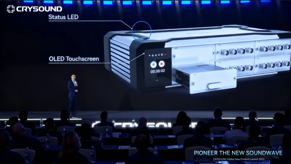 On October 16, CRYSOUND officially launched five new products — SonoDAQ, OpenTest, CRY8500 Series SonoCam Pi Acoustic Camera, CRY3010 Series Sound Calibrator, and CRY578 Bluetooth LE Audio Interface. These latest innovations embody CRYSOUND’s continuous pursuit of excellence, delivering advanced performance, reliability, and flexibility for acoustic testing and measurement.
