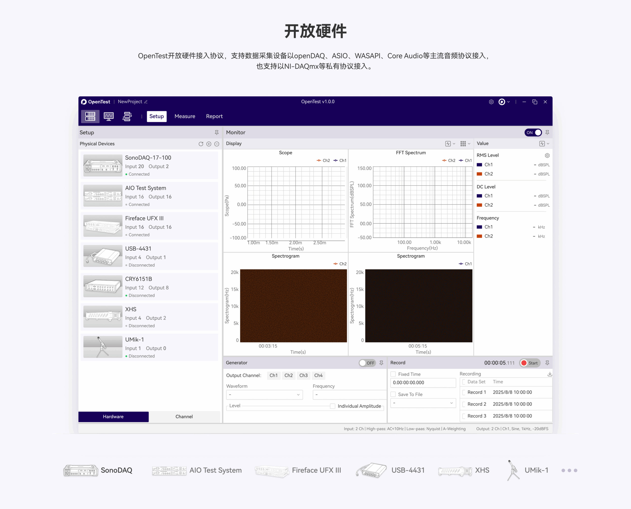 Combines hardware and software for high-speed, high-precision signal acquisition, ideal for various acoustic applications.