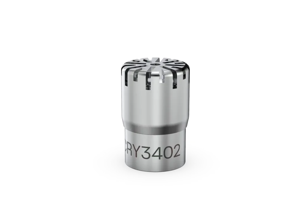 The CRY3102 is a 1-inch pressure-field prepolarized measurement microphone designed to be used in conjunction with a coupler chamber, particularly suitable for headphone testing and audiometer measurements.