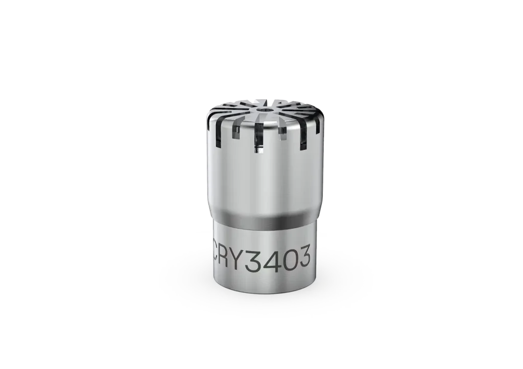 The unique design of CRY3402 provides a flat frequency response, allowing for measurement frequencies up to 70 kHz. It is also capable of withstanding sound pressure levels of up to 170 dB. This makes it an excellent general-purpose measurement microphone for high-definition audio measurements and other ultrasonic acoustic applications.