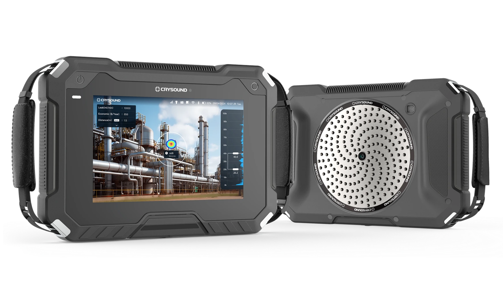 Introducing CRYSOUND's cutting-edge acoustic imaging camera, revolutionizing industrial inspections with advanced capabilities. The CRY8124 acoustic imaging camera excels at pinpointing leaks, identifying electrical partial discharge, and detecting mechanical deterioration. Setting a new standard for sensitivity and efficiency, the CRY8124 boasts 200 microphones (the most in the industry). The device detects smaller leaks and partial discharges from greater distance than any other handheld acoustic imaging camera on the market.