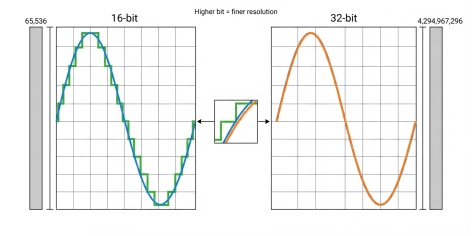 - Analog-to-digital converter (ADC): The core component that converts continuous analog signals into discrete digital samples at the configured sampling rate and resolution. Sampling rate sets the usable bandwidth (it must satisfy Nyquist and include margin for the anti-aliasing filter transition band), while resolution (bit depth) affects quantization step size and usable dynamic range. Many DAQ products use 16-bit or 24-bit ADCs; in high-dynamic-range acoustic/vibration front ends (such as platforms like SonoDAQ), you may also see 32-bit data output/processing paths to better cover wide ranges and weak signals (depending on the specific implementation and how the specs are defined).